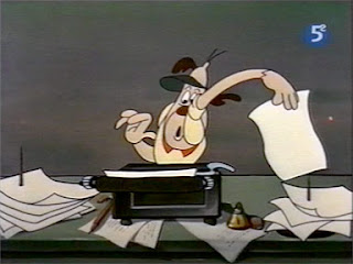 The regular Heckle & Jeckle nemesis Dimwit had a very short-lived series of his own. Only three cartoons have been made, and one of them called "How to Relax" (1954) is featured in today's post. Dimwit in this more humanized form is basically a Goofy rip-off, and most of the situations will be familiar to anybody who has seen Jack Kinney's excellent Goofy cartoons from the early 50s. However, one thing that sets this cartoon apart is the unbelievable animation by Jim Tyer. The first two minutes contain one of the greatest depictions of frustration and neurosis ever seen in any cartoon. I find these screenshots almost uncomfortable to watch. The rest of the cartoon is a fairly routine Terrytoon, with exception of ending...